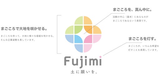 私たち富士見工業は「丁寧な対応で、オーガニックな商品・サービスが欲しい顧客に、まごころこめて、本来の人と物の価値を活かす企業」であることをブランド・アイデンティティとして掲げています。この企業姿勢をビジュアルとして結晶化させたのが新しいロゴであり、その想いを一言に凝縮した言葉が「土に願いを。」です。