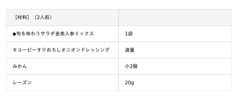 2. お皿に「旬を味わうサラダ 金美人参ミックス」を盛りつけ、1.のみかん、レーズンをのせる。