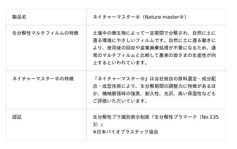 2.生分解性マルチフィルム「ネイチャーマスター(R)」の製品概要
