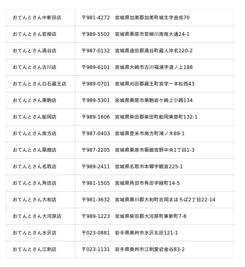 おてんとさん 店舗一覧